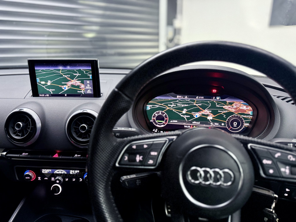 This really is an excellent example of a facelift model A3 S-Line finished in stunning mythos metallic black & having the very rare full virtual dashboard!